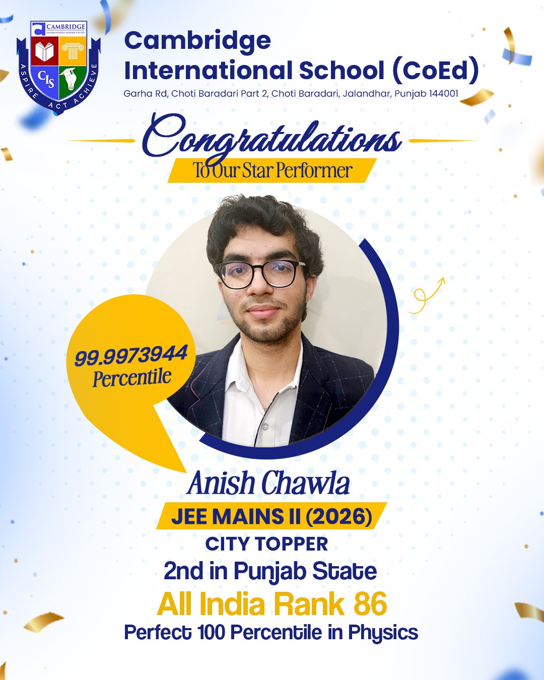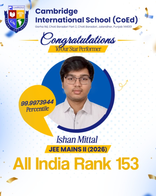 Cambridge International School (Co-Ed) came into being with the vision of a school that is multi-faceted in approach and is endowed with an infrastructure that suits the vision and provides an environment to accomplish the two-fold objective of education, namely – to augment the academic acumen of the learners and to invest in its pupils a wholesome development, harnessing their innate potential towards being an awakened and a responsible citizen of the world.