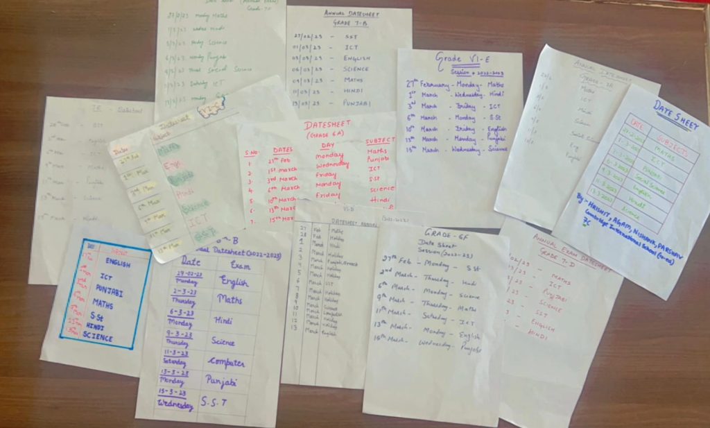 Our students of Grade VI to VIII made their Annual Exam date sheets. They learnt to work in a team and analyse the importance of each subject and its placement besides working collaboratively.