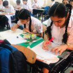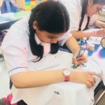 Grade VI students were engrossed in making beautiful and thought provoking doodles showing their care and concern about global healing and environmental issues.Students of grade VII and VIII were zealously involved in slogan writing churning out mind-bending and stimulating slogans on art sheets and T-Shirts.