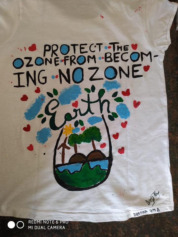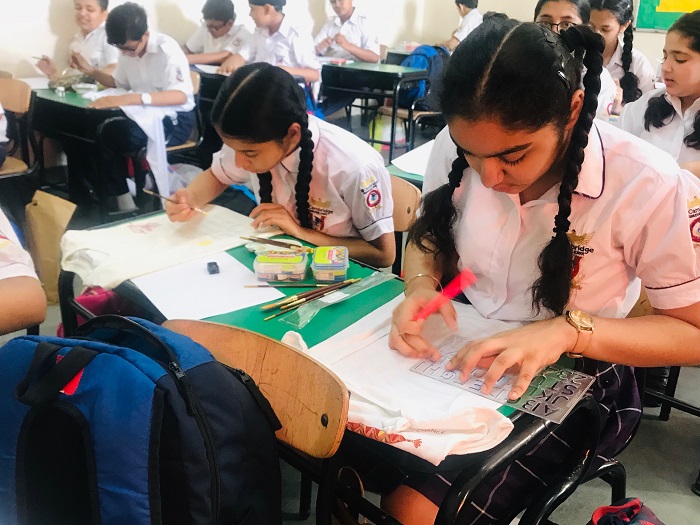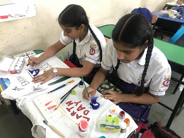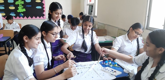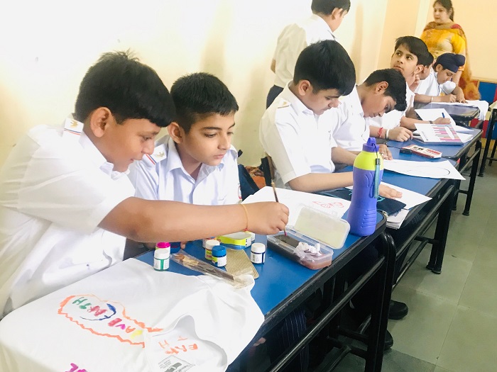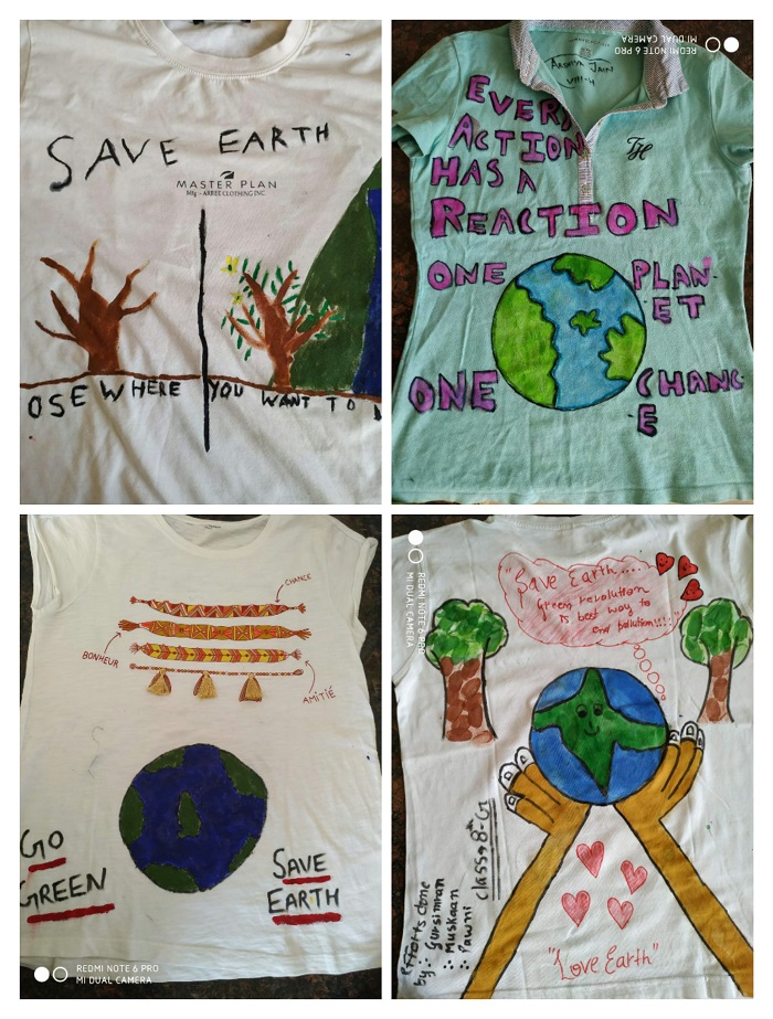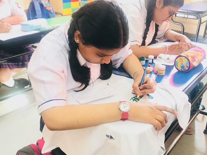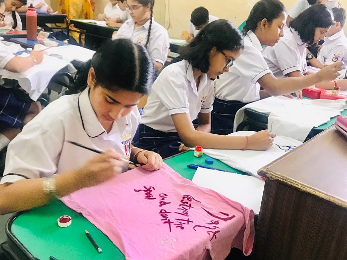 Grade VI students were engrossed in making beautiful and thought provoking doodles showing their care and concern about global healing and environmental issues.Students of grade VII and VIII were zealously involved in slogan writing churning out mind-bending and stimulating slogans on art sheets and T-Shirts.